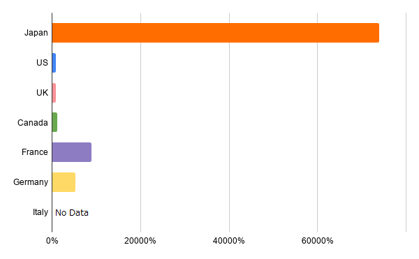 カジノやギャンブル関連ワードの検索増加率は、最大値がフランスで約120%、最小値がイギリスで約40%と、一定の需要があったことが伺えますが、増加率はそこまで高くはありませんでした。カジノやギャンブルなどは、現場の臨場感を求める人が多いのでしょうか。