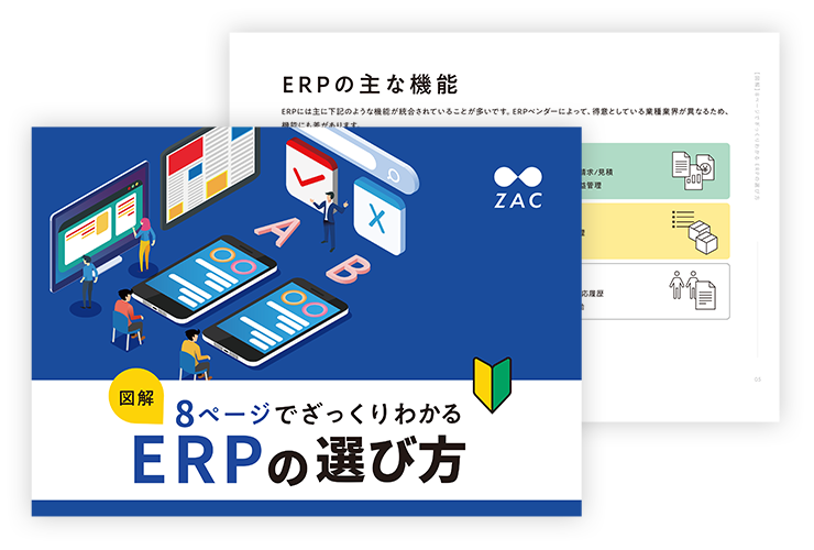 たとえば、本ブログを運営する株式会社オロが提供するクラウドERP「ZAC」は、広告業やコンサルティング業、システム開発業など、プロジェクトごとに業務を行う業種に適したパッケージシステムとなっています。自社の業界に特化したシステムに業務を合わせることで、スムーズな業務改善が期待できるでしょう。さらに、新機能の追加や不具合の修正といった定期的なバージョンアップの提供がある点もメリットです。