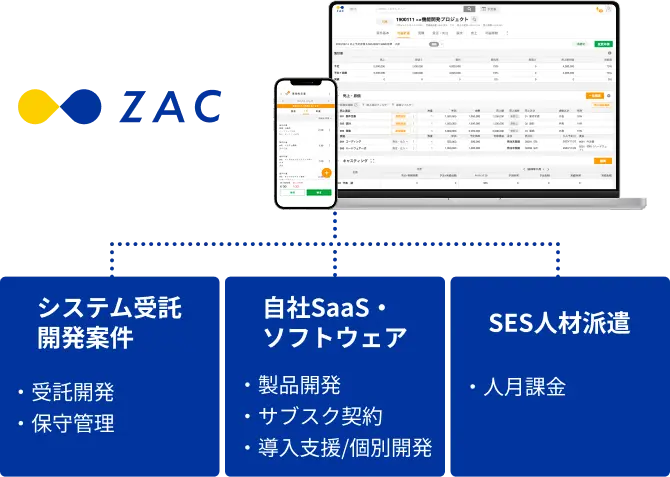 ZACはIT業界の複数事業の販売管理と原価管理を一元管理することができます。