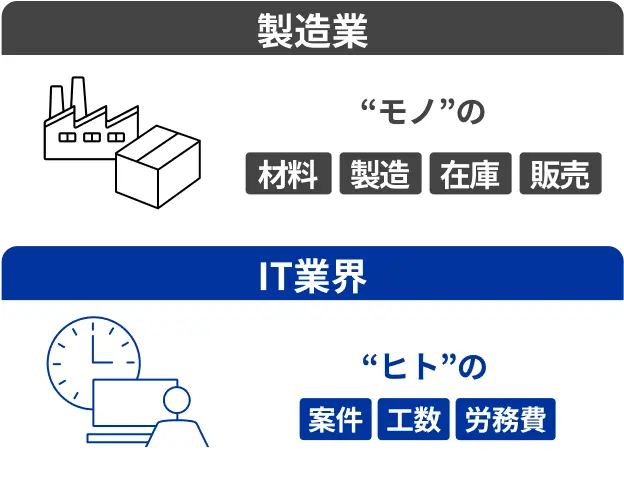 なぜ、一般的なERPはIT業界にうまくハマらないのか?その答えは、IT業の商習慣にあります。“モノ”ではなく”ヒト”を中心に動くビジネス。これが、業界特有の“独特さ”を生み出しています。